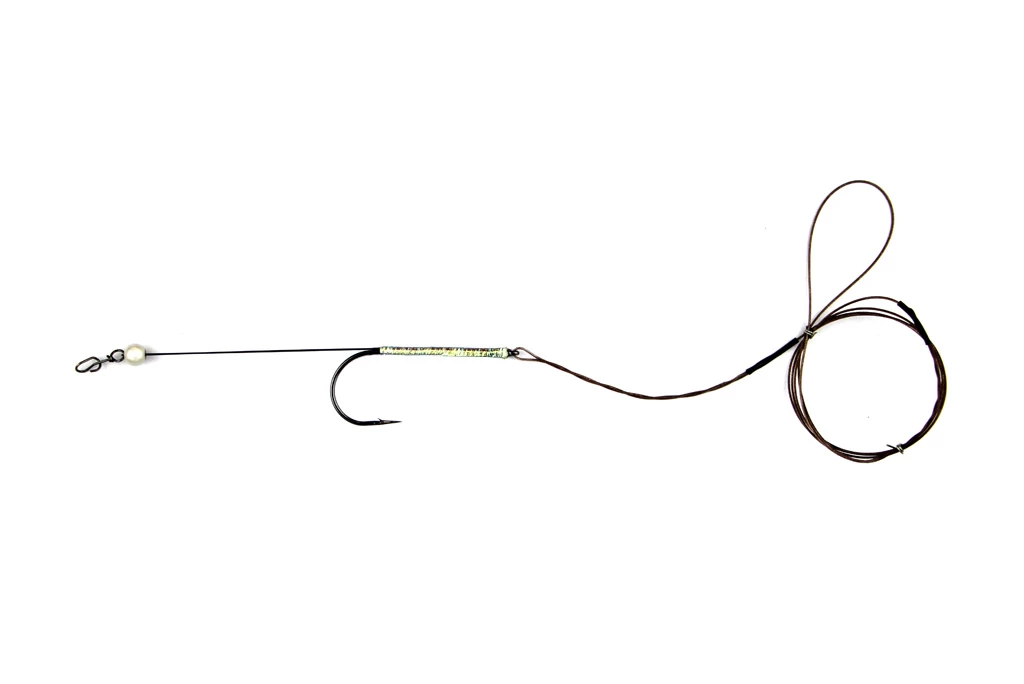 Wiggle Tails add an alluring extra to Pike Flies, this Wiggle Tail Trace allows you to clip in your choice of tail to the back of a a single hook trace rig. Perfect for use in conjunction with Fulling Mill Pike Tube Flies. Slide the loop of the trace through the plastic tube of your fly and seat the eye of the hook in the rear of the tube. The trace is then attached ‘Loop to Loop’ to your fluorocarbon leader.