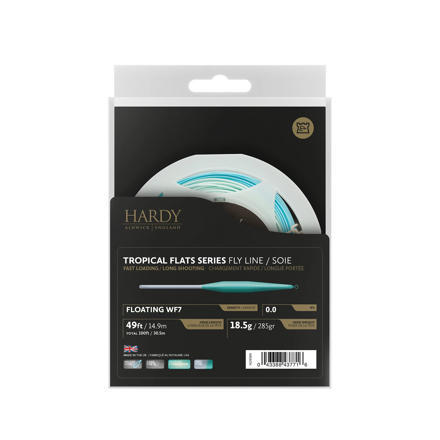 The Hardy Tropic Flats series fly line combats wind and extreme heat to deliver heavy difficult to cast saltwater flies with accuracy and control. Built on a stiff tropic core with a durable heat resistant coating this two tone floating line also features heavy duty welded tip loop and laser printed line ID. Medium head length gives maximum control within the deadly 20-60ft range.