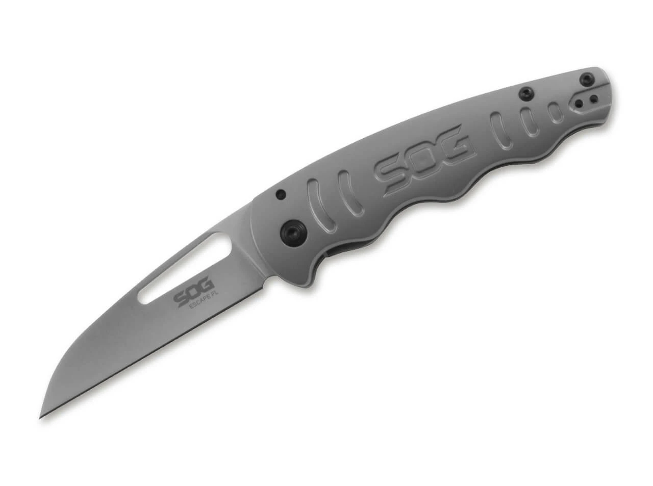 The SOG Escape FL has a blasted stainless steel handle with a framelock. The Wharncliffe blade, which is constructed of 8Cr13MoV, is also perfect for finer cutting operations. With tip-up/l-r convertible clip.