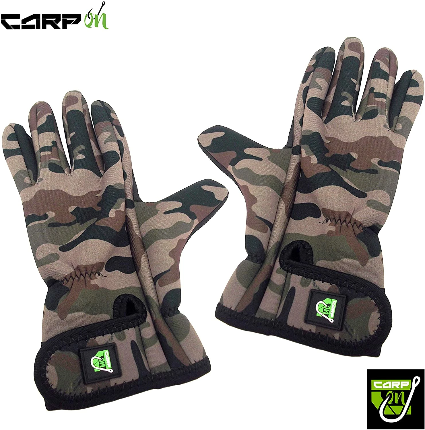 Carp On – Large Full Fingered DPM CAMO 2mm Neoprene Non Slip Gloves with Adjustable Secure Wrist Strap For Fishing and Working in Cold Damp Wet Conditions