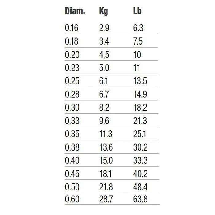| Option | 0.16mm 6lb 2.9kg Clear, 0.18mm 7.5lb 3.4kg Clear, 0.2mm 10lb 4.5kg Clear, 0.23mm 11lb 5kg Clear, 0.25mm 13.5lb 6.1kg Clear, 0.3mm 18lb 8.2kg Clear, 0.35mm 21lb 9.6kg Clear, 0.16mm 6lb 2.9kg Yellow, 0.23mm 11lb 5kg Yellow, 0.25mm 13.5lb 6.1kg Yellow, 0.28mm 15lb 6.7kg Yellow |