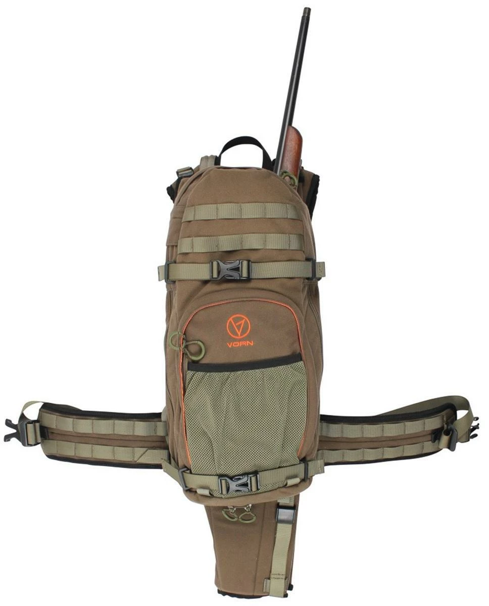 Spacious and well-padded weapon compartment. Fits all normal hunting shotguns and rifles with or without scopes and/or bipods. Internal frame in aluminum 6061 T6 which efficiently transfers the load from the main compartment to the carrying system. Wide and fairly thin shoulder straps ensure comfortable carrying but does not interfere with the buttstock of your firearm when shooting. Proper hip belt for comfortable load transfer. The hip belt has MOLLE for mounting pouches and accessories. External and internal pockets and compartments for storage and easy access to your hunting gear. Internal pocket for hydration bladder not included . Weight 2 6 kg 5.7 lbs YKK zippers and gliders Duraflex Acetat buckles High-quality nylon webbing.
