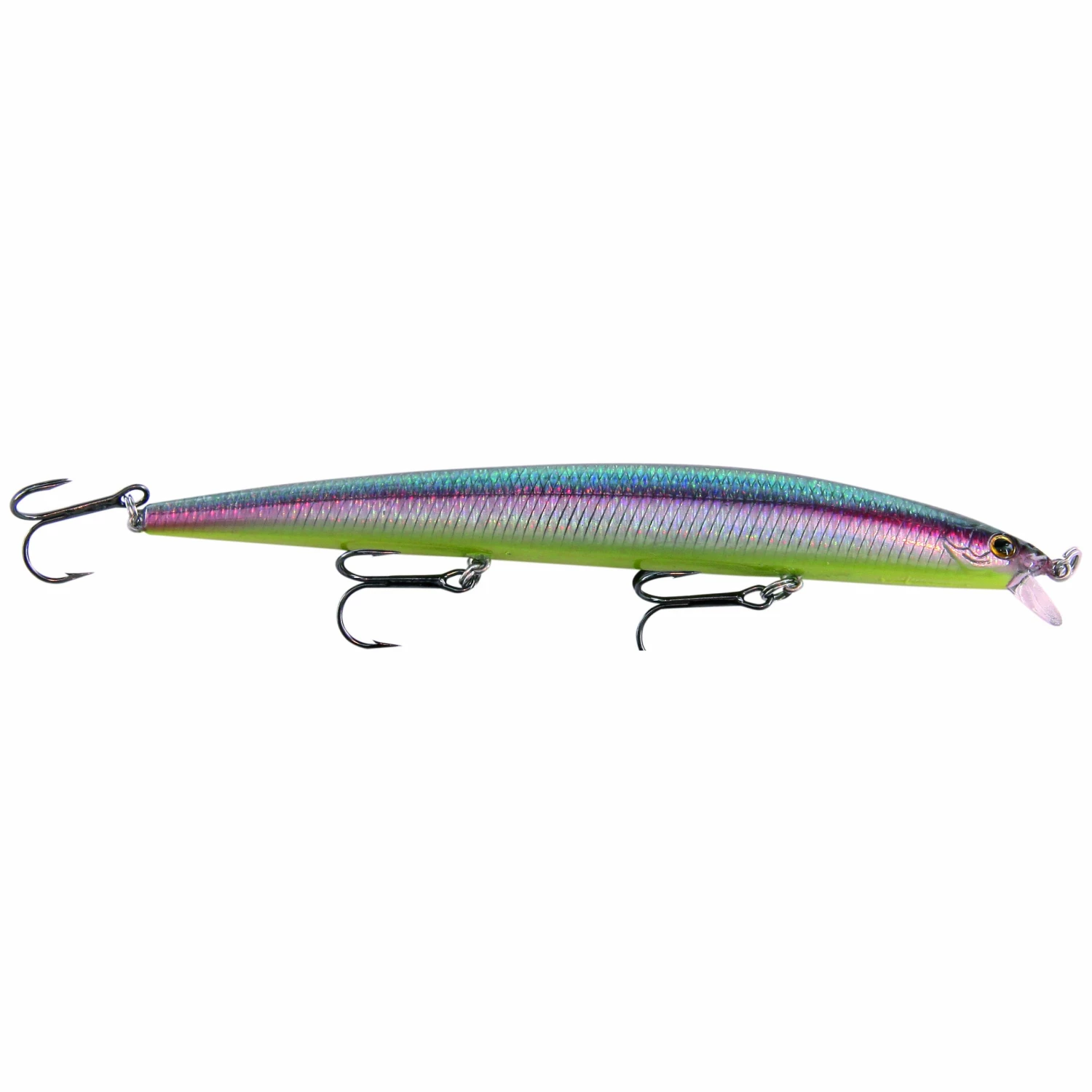 This floating Slim is stunningly effective for sea bass. Its streamlined, stylized shape and internal magnetic system make for spectacular casting. Its swimming action is dominated by a very fast, tight rolling motion. It can be handled just as well at low and high retrieval rates.