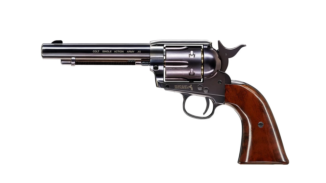 One of the worlds most famous revolvers, the Colt Peacemaker. This replica is made using metal components to give a authentic feel and weight to the revolver. Available in both BB and Pellet styles.