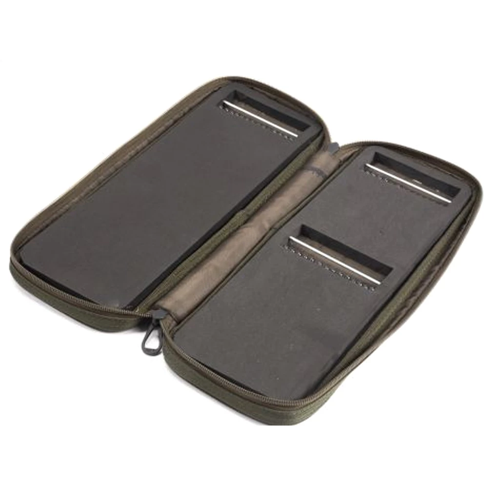 High-density foam, with boards specially cut out to prevent curved rig tubing and angled shrink tube kickers from being straightened when stored. Three boards supplied with 42 pins to separate, store and quickly identify rigs.