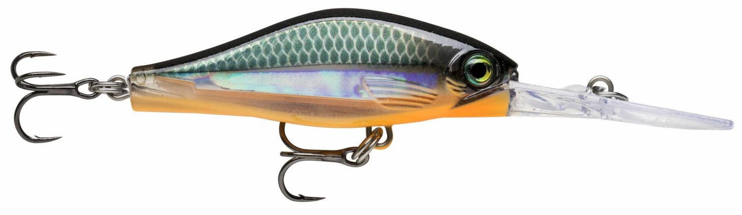 The long-casting Shadow Rap® Jack Deep dives down fast when cranked. With a very slow rise on the pause, you can twitch it to imitate the flicker and fade of a dying baitfish almost on the spot, or crank it in with a steady retrieve. Fitted with VMC® treble hooks.