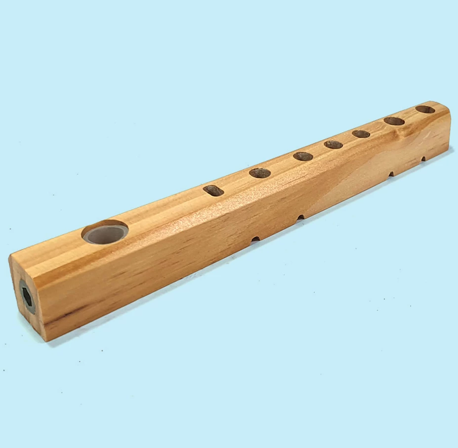 The Fly Tying Tool Bar from Stillwater is a wooden toolbar which features 6 large tool points, with one medium-sized tool point on the same line. It also has 4 small points for fixing smaller tools to. It has 1 large fixture point for attaching the toolbar on a vertical bar or, if you want to attach it to a horizontal bar, there is a Hex screw-in point.