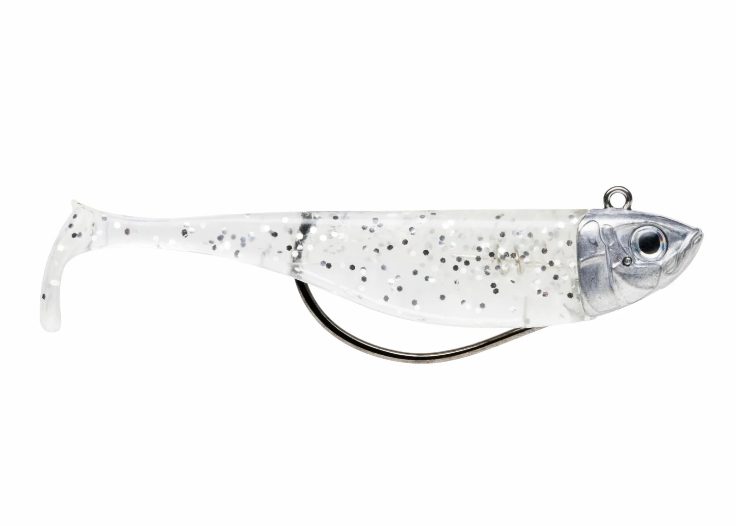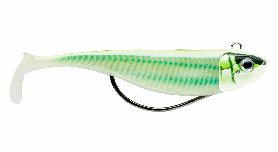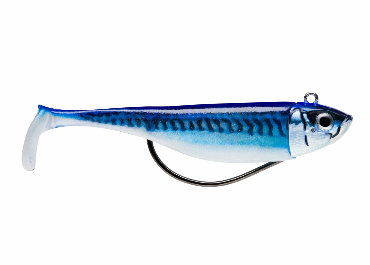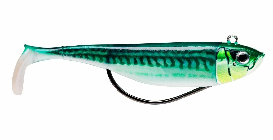 The Biscay Coastal Shad provides an excellent life like swimming action thanks to it’s articulated body and head design. The supple body is attached to the weighted head via a free-swining screw and VMC weedless style hook, which sits perfectly hidden within the hook channel on the lure’s back. Due to the ultra supple body when a fish takes the lure the body easily collapses exposing the hook point. Due to the weighted head design this lure is great for casting even in windy and rough sea conditions. Each lure is magnificently detailed with each weighted head matching it’s body for a seamless colour transition.
