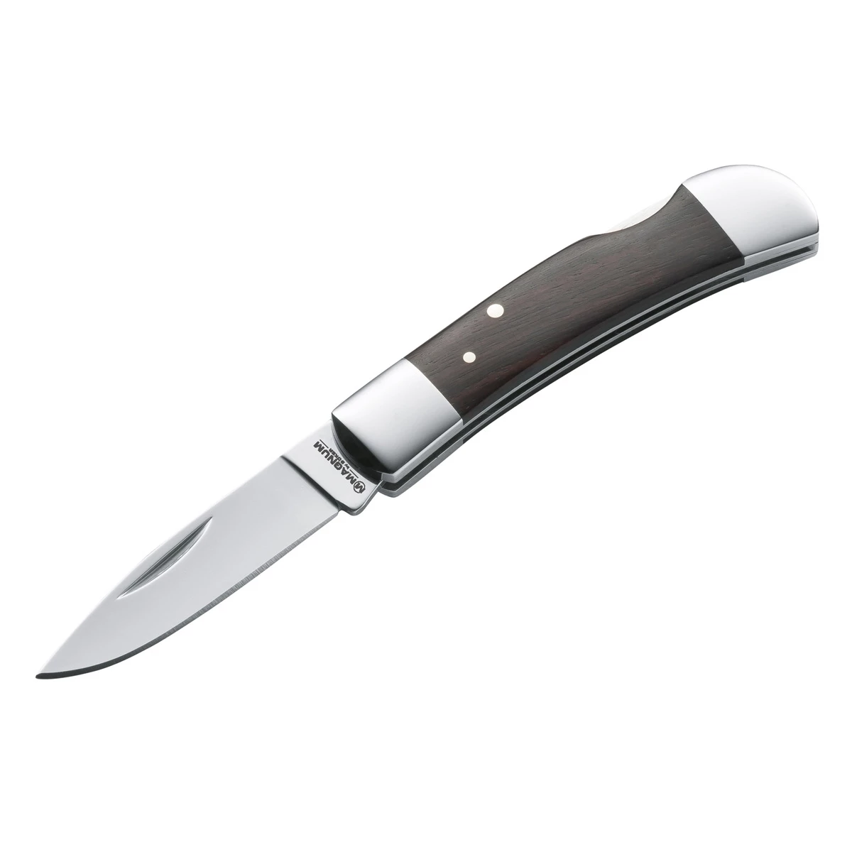 Boker Magnum Jewel Knife. The value of this fine knife is reflected in its name. The polished blade made of stainless 440 steel locks cleanly over the lockback closure. The dark rosewood scales harmonise perfectly with the similarly polished metal cheeks. A knife, small in your pocket but big in use!