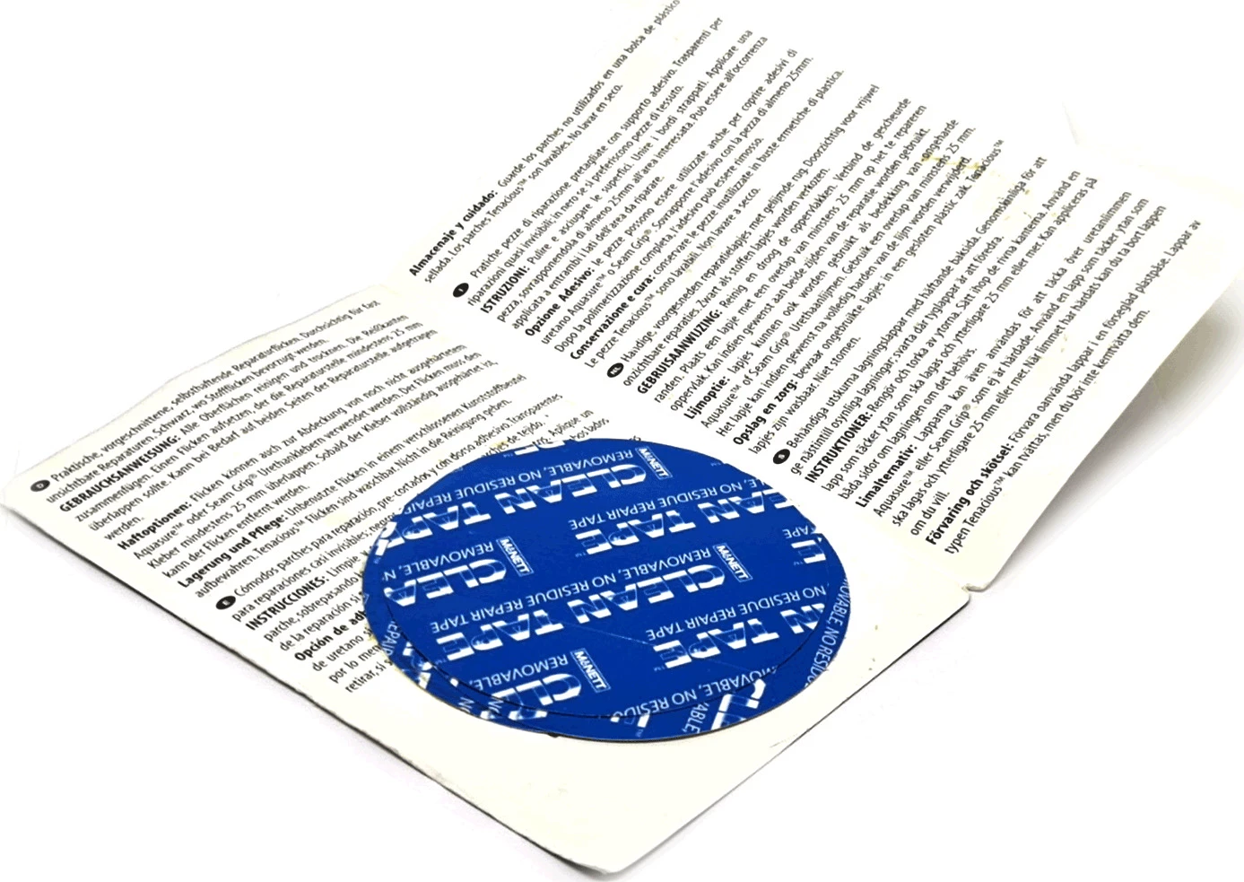 Convenient pre-cut adhesive-backed repair patches. clear for nearly-invisible repairs, black where fabric patches are preferred.
