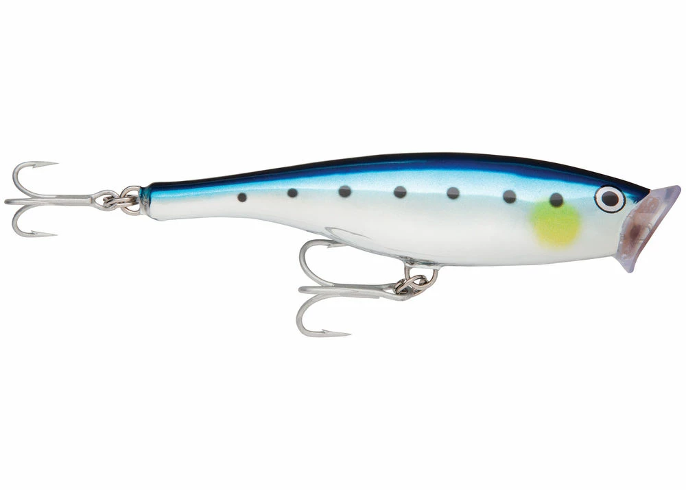 With its unique loud popping, cupped plastic lip and its balsa wood body, the Skitter Pop can be fished in a variety of methods when fish are surface feeding. Saltwater model built heavy duty with saltwater rigging.