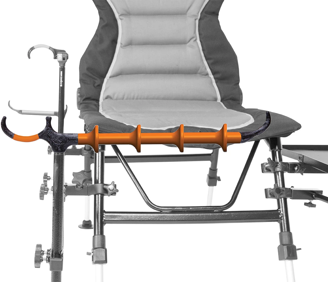 A specially designed rest that simply screws into the top of a thread stikk. It has a soft foam on the feeder rest side, and non-slip silicone on the pole hook side. Note: the feeder side is not designed to support the weight of a pole. Included in the full MX-100 chair package.