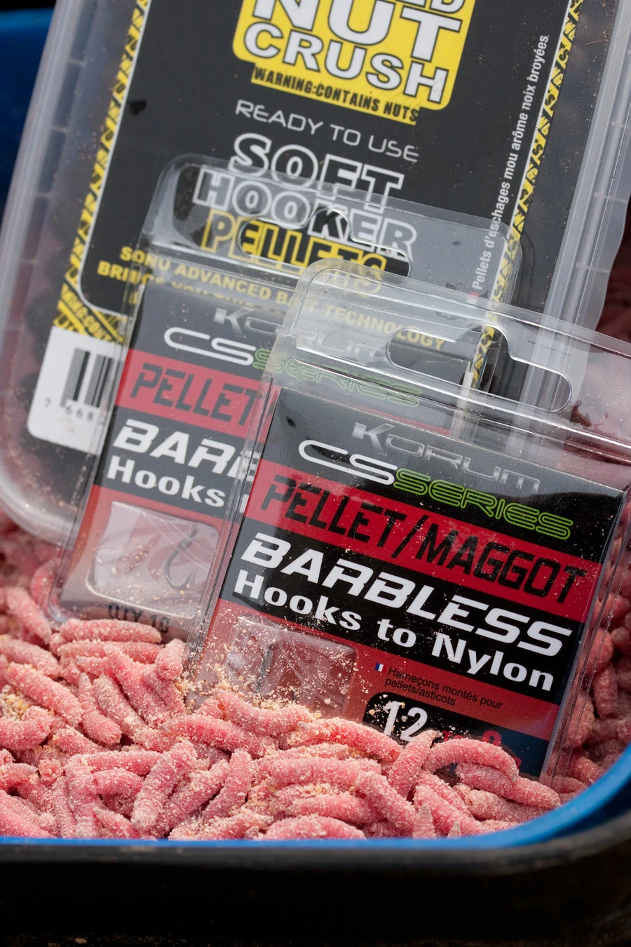 Korum’s CS Barbless Pellet/Maggot Hooks have been designed as part of the CS Hooks to Nylon range, a bespoke range of barbless rigs, purpose built for use with different baits. They are the perfect rigs for today’s commercial fisheries, whether you are feeder fishing, float fishing, or even for bomb work. Korum picked the brains of some of the countries top match anglers to deliver a great range of rigs to get you fishing fast.