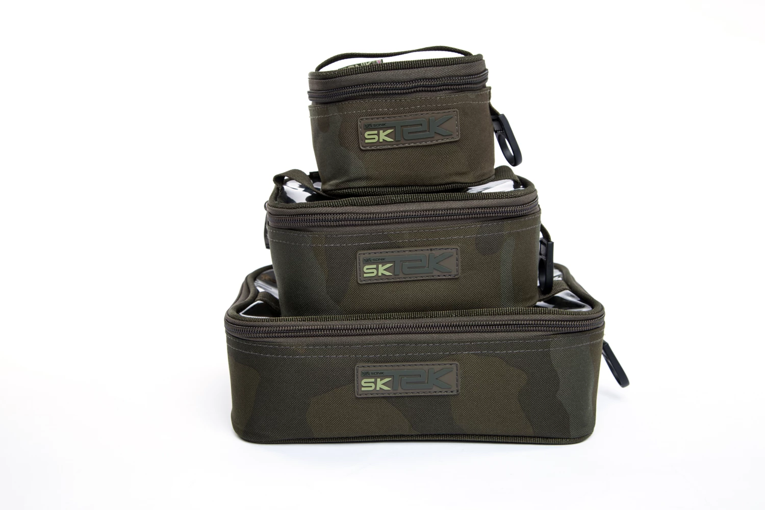 Available in 3 sizes, the SK-TEK accessory pouches have a mass of uses. The rigid design and padding offers plenty of protection and they are made with a handy transparent lid so you can see what is inside easily. They have top and side grab handles and heavy duty waterproof base material. They are all sized to fit neatly into the SK-TEK luggage as part of a modular storage system.