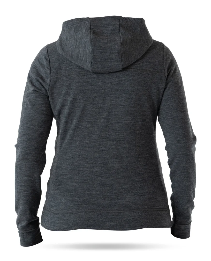 Merino wool is extremely soft, easy to wear, and offers several benefits. It has a temperature-regulating and odor-inhibiting action, keeping you warm on colder days and cool on hot days. The anthracite casual hoodie is ideal for treks and travels at any time of year, as well as for lounging at home. The merino wool comes from mulesing-free sources and is biodegradable as a natural substance.