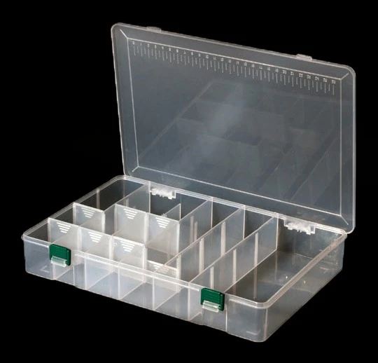 This versatile tackle box features 4 full length compartments that can be divided with the included plastic cards giving up to 22 compartments. Great for holding a wide variety of tackle and bits.