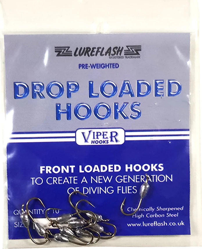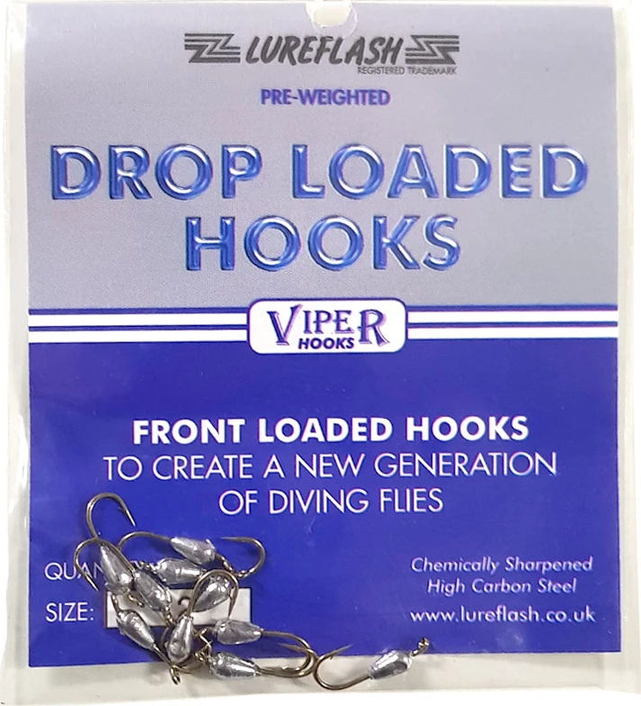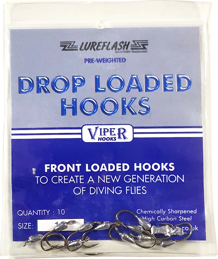 Lureflash Drop Loaded Hooks are fantastic to fly tying hooks that feature a small weight attached to the hook shank which allows your flies to sink at a nice steady rate. These are chemically sharpened, high carbon steel hooks, available in sizes: 8, 10 and 12.