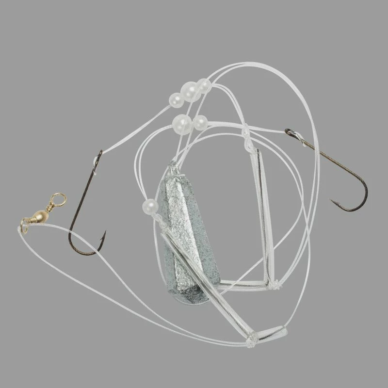 A two hook rig loaded with beads, attractor tube and blades which will catch the attention of plaice, flounders, dabs and even bream.