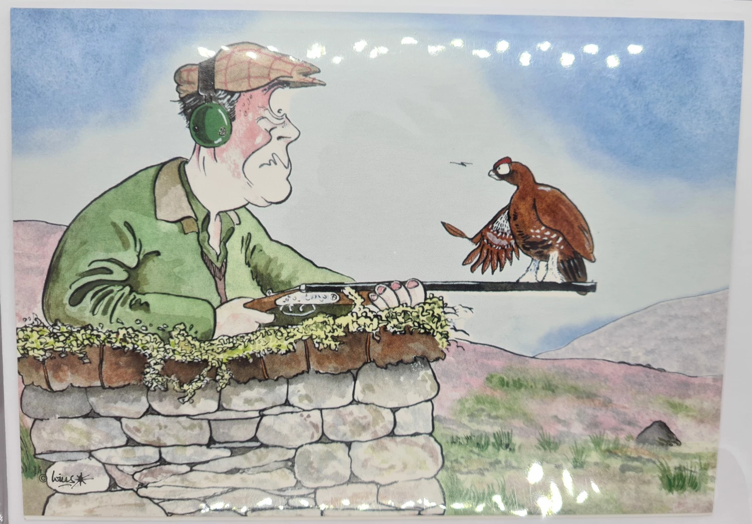 Greetings or thank you card with humorous cartoon scene.