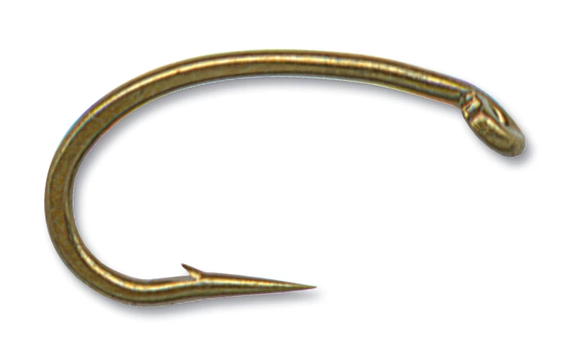 These Egg Caddis hooks from Mustad are made twice as short and twice as strong as standard wire hooks. It is down eyed with an offset hook. These hooks are forged super strong and have a bronze finish with them.