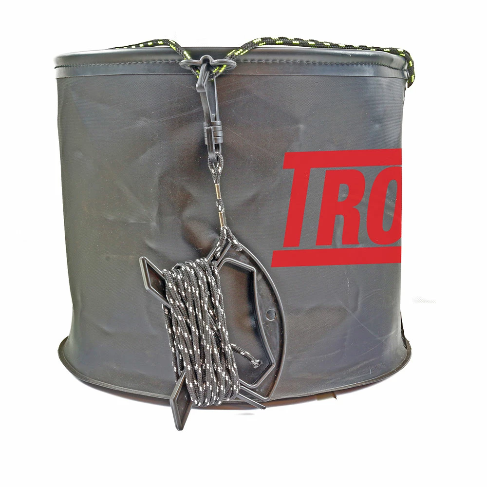 A folding 10L bucket on a cord, ideal for getting water from a beach, pier or boat.