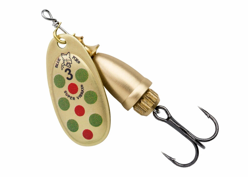 BlueFox Vibrax UV Spinners are patented two-part bodies which emit low-frequency sound vibrations that attract fish and trigger strikes while virtually eliminating line twist. These spinners are featured with VMC® Hooks which are extremely sharp for quick penetration and perfectly tempered for strength.