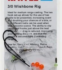Ideal for medium range casting. The two hook set-up allows for the use of two baits to be presented, increasing scent and doubling your chances of a bite, or two different baits can be used when bites become scarce. The ability to clip two baited hooks just above the lead ensures that drag is reduced, improving your casting distance, and that the snood is secured tight, preventing tangles.