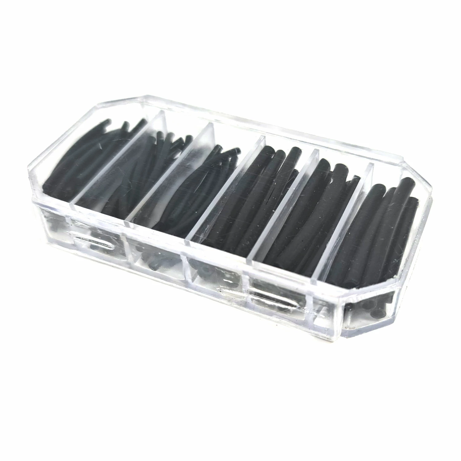 A handy, see-through box containing a variety of different 4cm long Silicone tubes in different diameters ranging from 1 to 4mm.