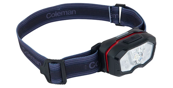 The Coleman CXO+ 200 LED head torch is lightweight and compact, with a maximum output of 200 lumens. Four white brightness levels are available as well as a red light mode. The central white LED uses a smooth reflector to provide a focused beam with low and high settings, while the two white side LEDs provide a diffused flood beam in the mid setting. The extra bright setting combines the two white side LEDs and the central LED for maximum coverage.