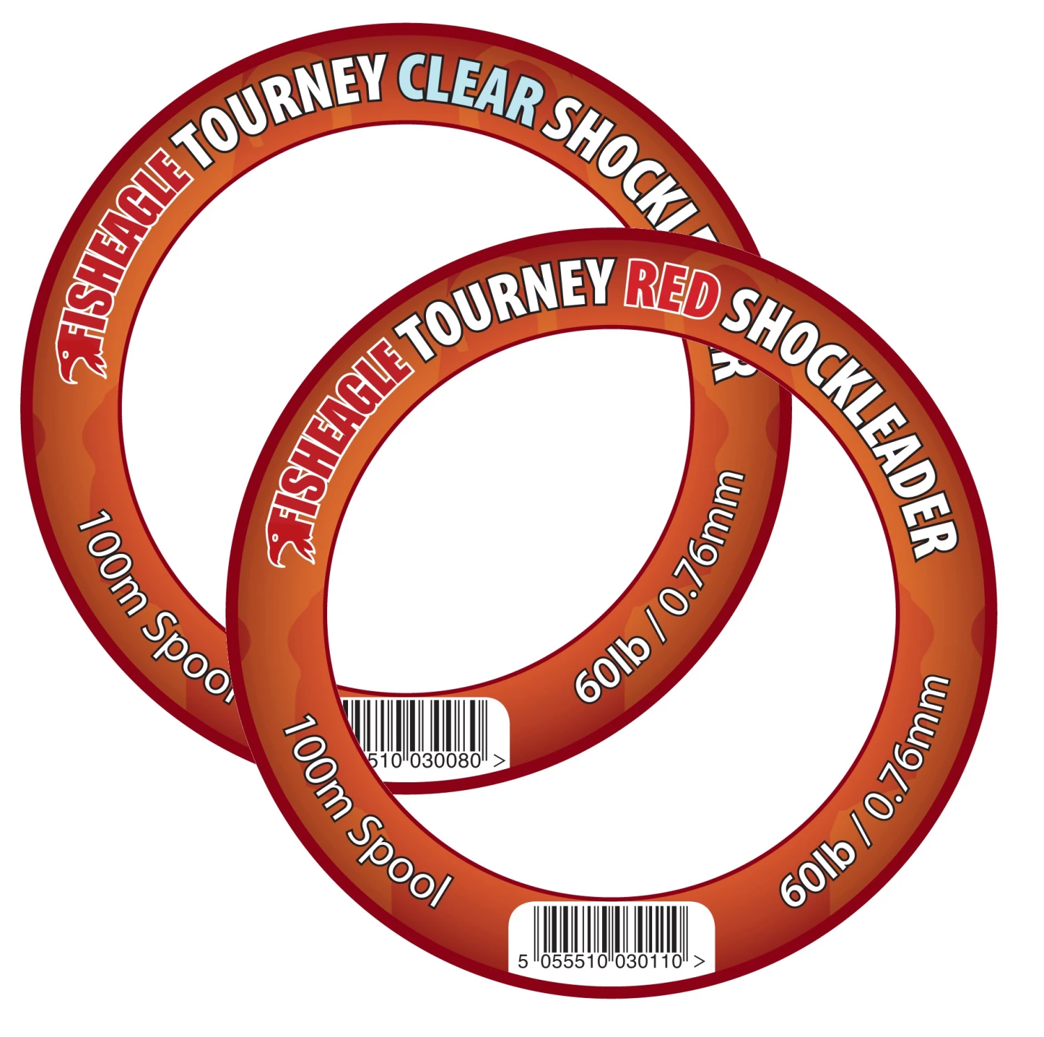 Tourney Shockleader Mono from Fisheagle is simply superb for tying your rigs, snoods and leaders. Tourney Shockleader has a high abrasion resistance, and is available in a choice of red and clear colours, and in 50lb, 60lb and 80lb breaking strains. 100m of line per spool.