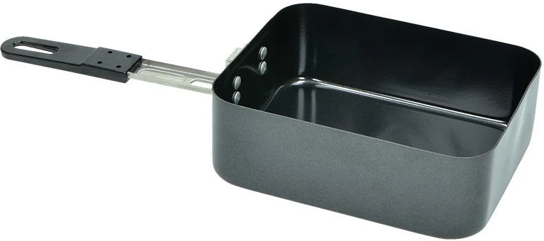A Pair of non-stick coated mess tins. The non-stick coating allows campers and anglers to camp out without the need to carry cooking oil.