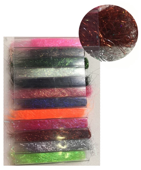 Angel Hair Dubbing is so fine it can be used as a dubbing or even as a winging material. Widely used in a range of modern patterns that call for a bit of flash, and highly effective on any type of streamer, wet or nymph. The texture is medium coarse, yet still very easy to dub or tease out as a wing or tail. Each pack contains 12 highly effective and popular colours in a convenient dispenser rack.