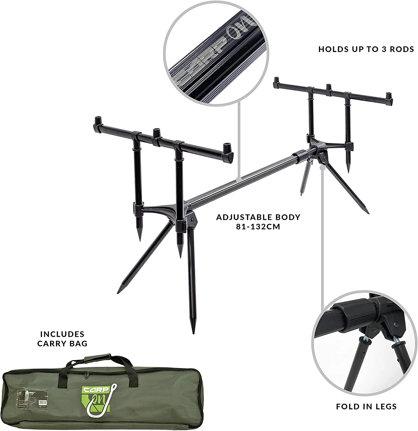 Carp On – Lightweight Aluminium 3 Rod Pod Session-Master – Adjustable Body 81-132cm with Fixed Legs And Tough Carry Bag – For Carp and all General Specimen Fishing Set Ups
