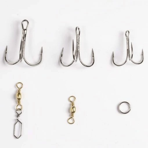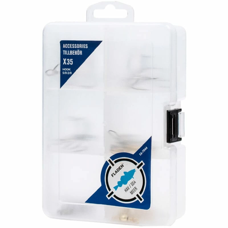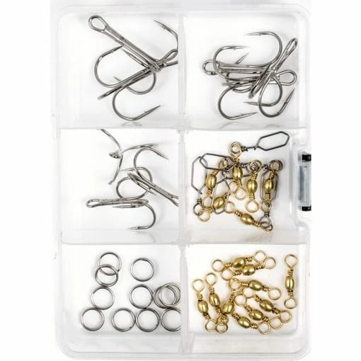 Boxed kit with 35 pieces of terminal tackle, ideal for targeting big fish in fresh and salt water.