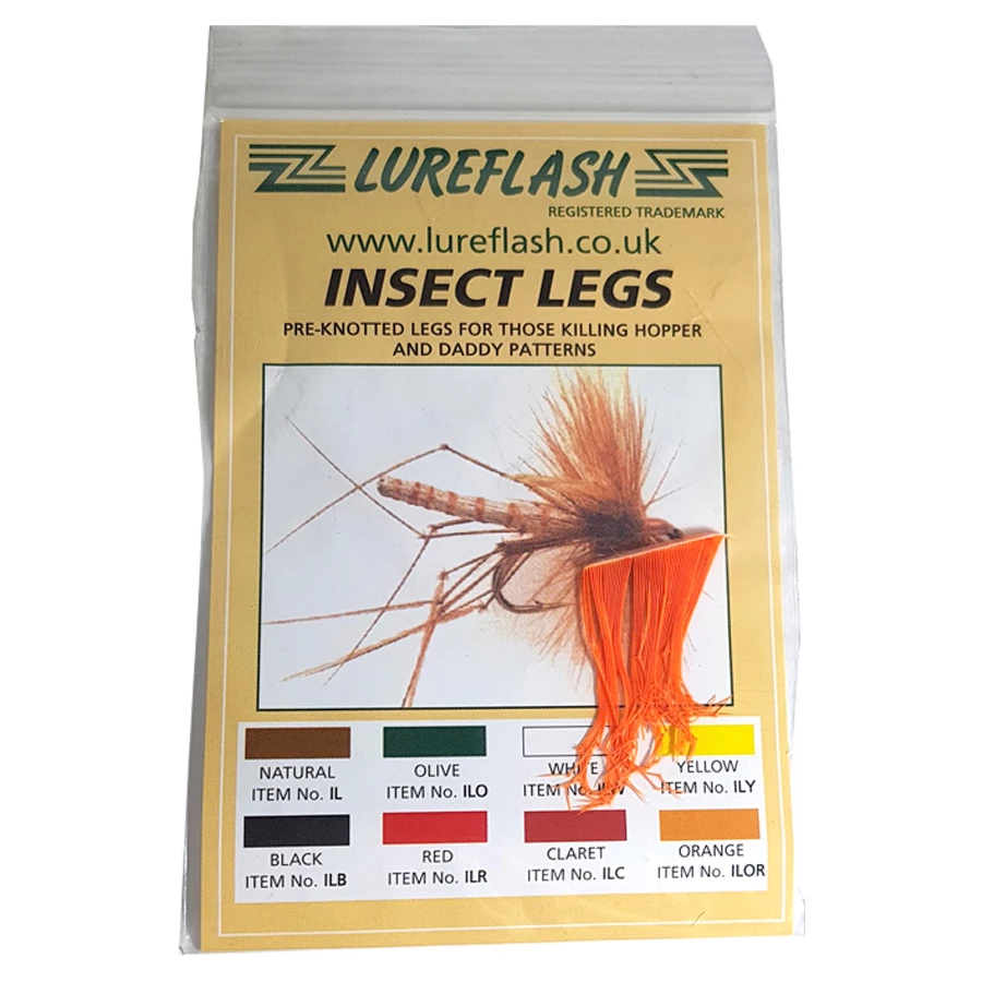 Lureflash Insect Legs come in colours: Red, Orange, White and Yellow. These insect legs are ideal for creating legs of grasshoppers, daddy long legs or flies with long legs.