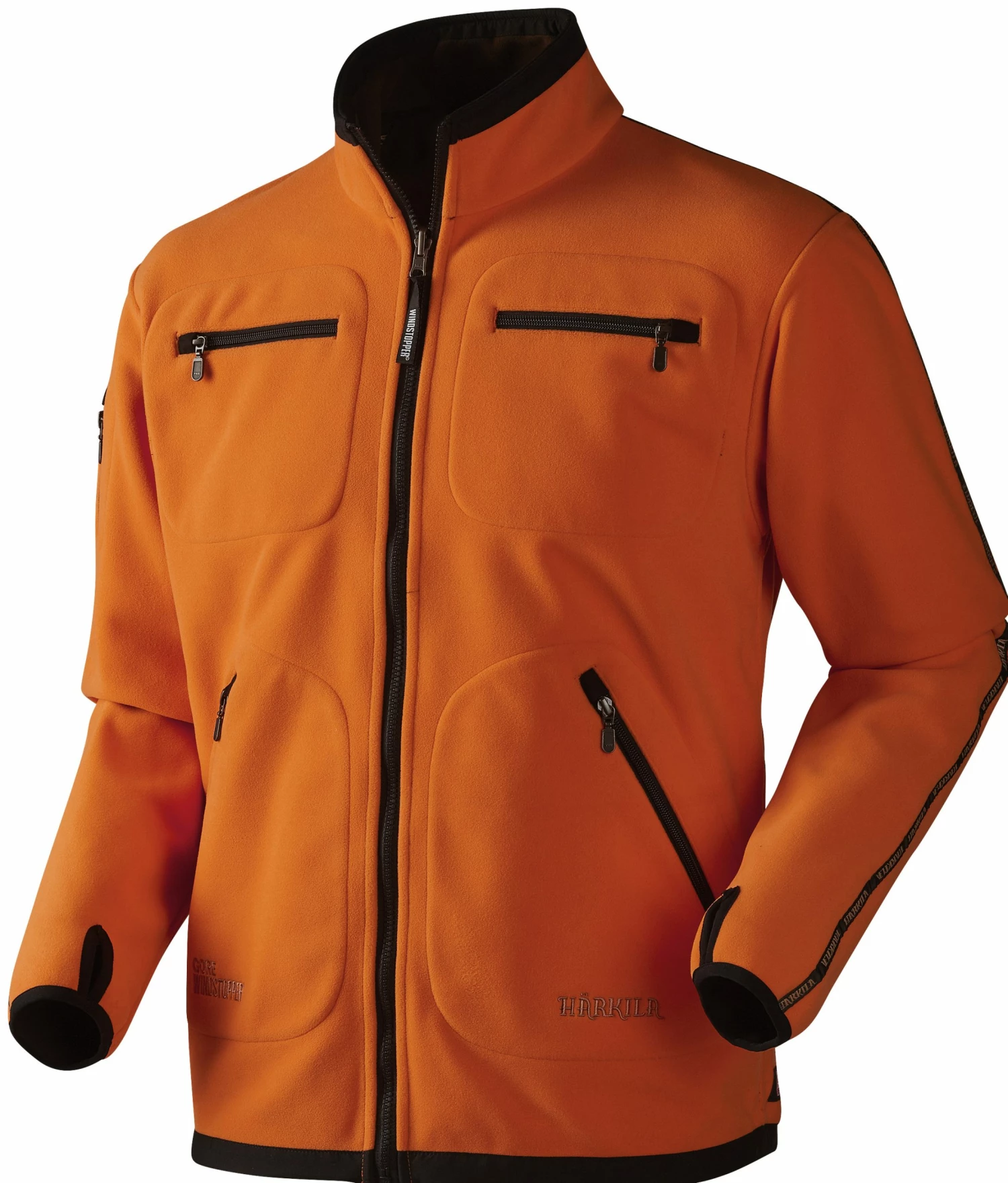 Reversible jacket in technical fleece, with windproof, breathable GORE WINDSTOPPER® membrane, double radio pockets, sleeve pocket, side pockets and drawstring hem. In a green/orange colourway to increase visibility when necessary.