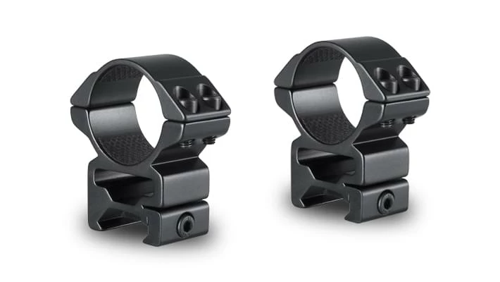 Double hex screws to hold your scope firmly in place. Weaver version features crossbar for additional security. Internal cushion tape prevents marking and damage. High-grade aluminium anodized in matte black.