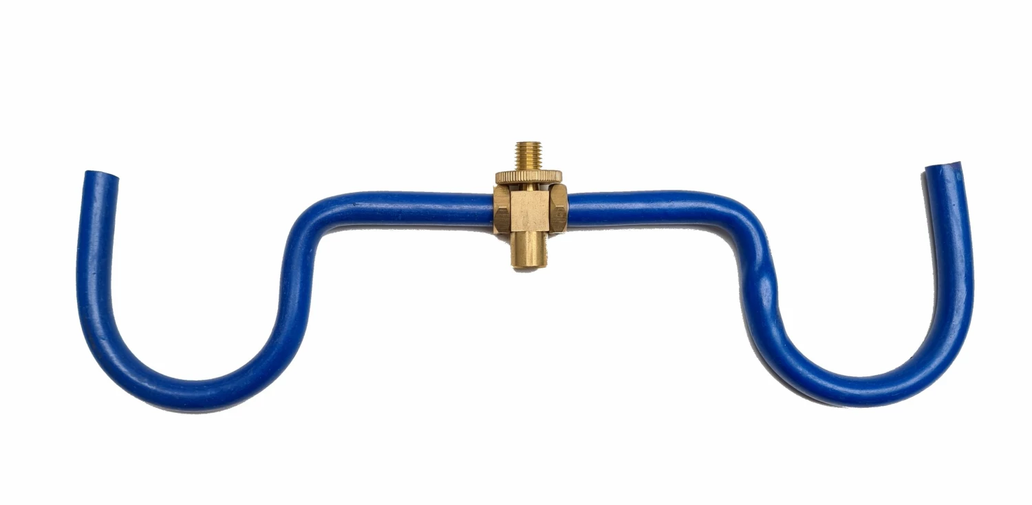 Economy double U-shaped tripod rest, with blue rubber coating to prevent rod blanks from getting scratched. A brass universal thread screw allows it to be attached to rests. The bar is 11.5 inches long and will accommodate most rods.